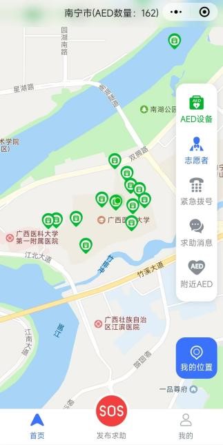 微信搜索“广西AED急救地图”小程序,即可查看附近可用设备。
