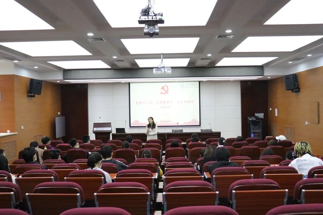 为迎接党的二十大,持续深化习近平总书记关于青年工作的重要思想学习,深刻感悟党领导中国青年运动的光辉历程,持续深化党的百年奋斗重大成就和历史经验学习教育,深刻领悟党和国家事业发展的伟大成就,2022年4月1日,澳门正规电子游戏平台团委在博望报告厅开展“喜迎二十大、永远跟党走、奋进新征程”主题团课。此次团课由澳门正规电子游戏平台团委书记梁靖主讲,澳门正规电子游戏平台全体团学干部参与。