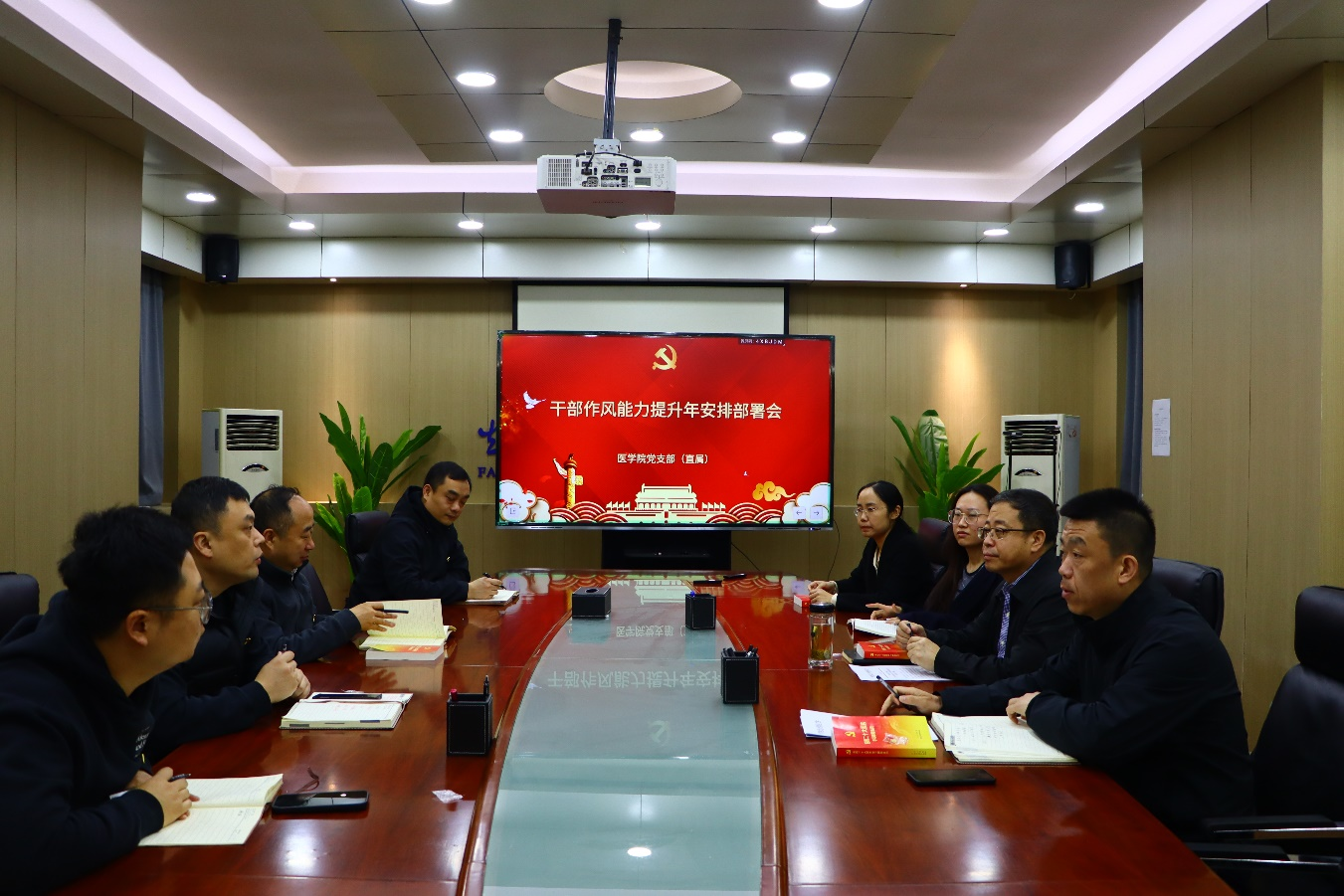 此次会议是澳门正规电子游戏平台党支部(直属)有关干部作风能力提升年活动的重要组成部分,也是落实推进作风建设常态化的重要工作。学院将坚持干部作风、教师教风和学生学风一体推进,坚持作风建设与能力提升一体推进,坚持作风建设与事业发展一体推进,积极落实领导责任,深入调查研究,加强正面宣传引导,从严督导检查,充分发挥澳门正规电子游戏平台办学优势,用作风能力提升举措汇聚我校医学教育事业发展动力。