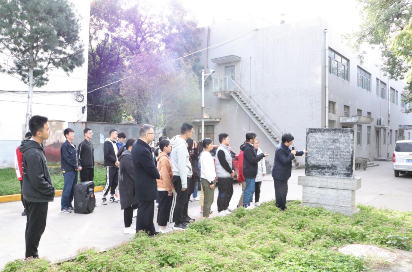 在大礼堂西侧“东北大学校舍奠基纪念碑”前,姚老师历数在此发生的大事件。他讲到1936年“一二九运动”纪念日,东北大学爱国青年在学校礼堂前集会,准备进城举行抗日救国请愿,三天后随之爆发了西安事变。在原址回顾那段促成中华人民团结一心、共同抗日的关键历史,仿佛身临其境,同学们心情澎湃、热血沸腾。