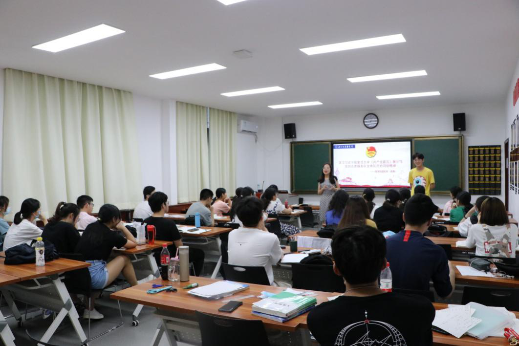 会上,梁老师宣读了总书记给复旦大学《共产党宣言》展示馆党员志愿服务队全体队员的回信全文。她讲道,总书记的回信,是对陈望道老校长首译《共产党宣言》的高度评价,是对志愿服务队积极宣讲老校长首译故事、传播马克思主义真理的充分肯定,是对广大党员特别是青年党员进一步发扬红色基因传承精神、成为红色基因传人的殷切期望。现场支部团员围绕深入学习习近平总书记重要回信精神,展开热烈讨论。