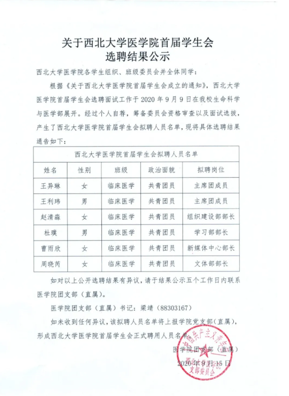经过学生个人自荐及筹备委员会资格初审,候选人名单如下(按姓名拼音排序):