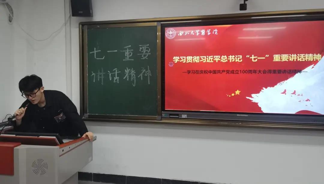 专职团干部雷蕾为2020级临床医学团支部和2020级生物医学科学团支部,作学习习近平总书记“七一”重要讲话精神专题学习报告。从孟晚舟安全回国的重大胜利讲起,对比巴黎和会的外交失败,雷老师深入浅出地为团员们讲解了习近平总书记“七一”重要讲话的重大意义、丰富内涵、核心要义与实践要求,要求团员青年们不断提高思想政治觉悟,不断增强做中国人的志气、骨气、底气,争做能担当民族复兴大任的时代青年。