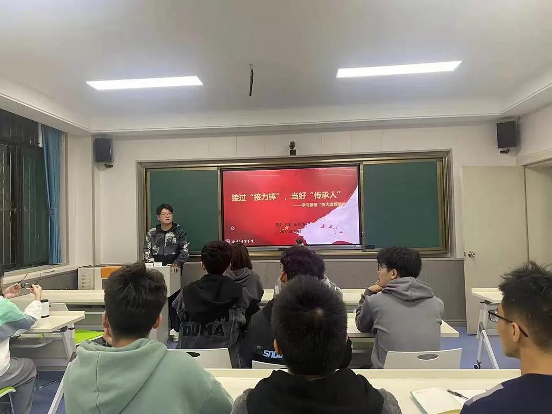 为深入学习习近平新时代中国特色社会主义思想,贯彻习近平总书记“七一”重要讲话和习近平总书记来陕考察重要讲话精神,增强团员青年对中国共产党百年奋斗历程的认识,引导西大医学学子承担起新时代的责任与担当,澳门正规电子游戏平台团支部(直属)于10月、11月分别开展三期“医青之声”系列主题团课。王利玮以“接过‘接力棒’,当好传承人”为主题,与团员们一起回顾习近平总书记在“不忘初心、牢记使命”主题教育总结大会和庆祝中国共产党成立100周年大会上的讲话。