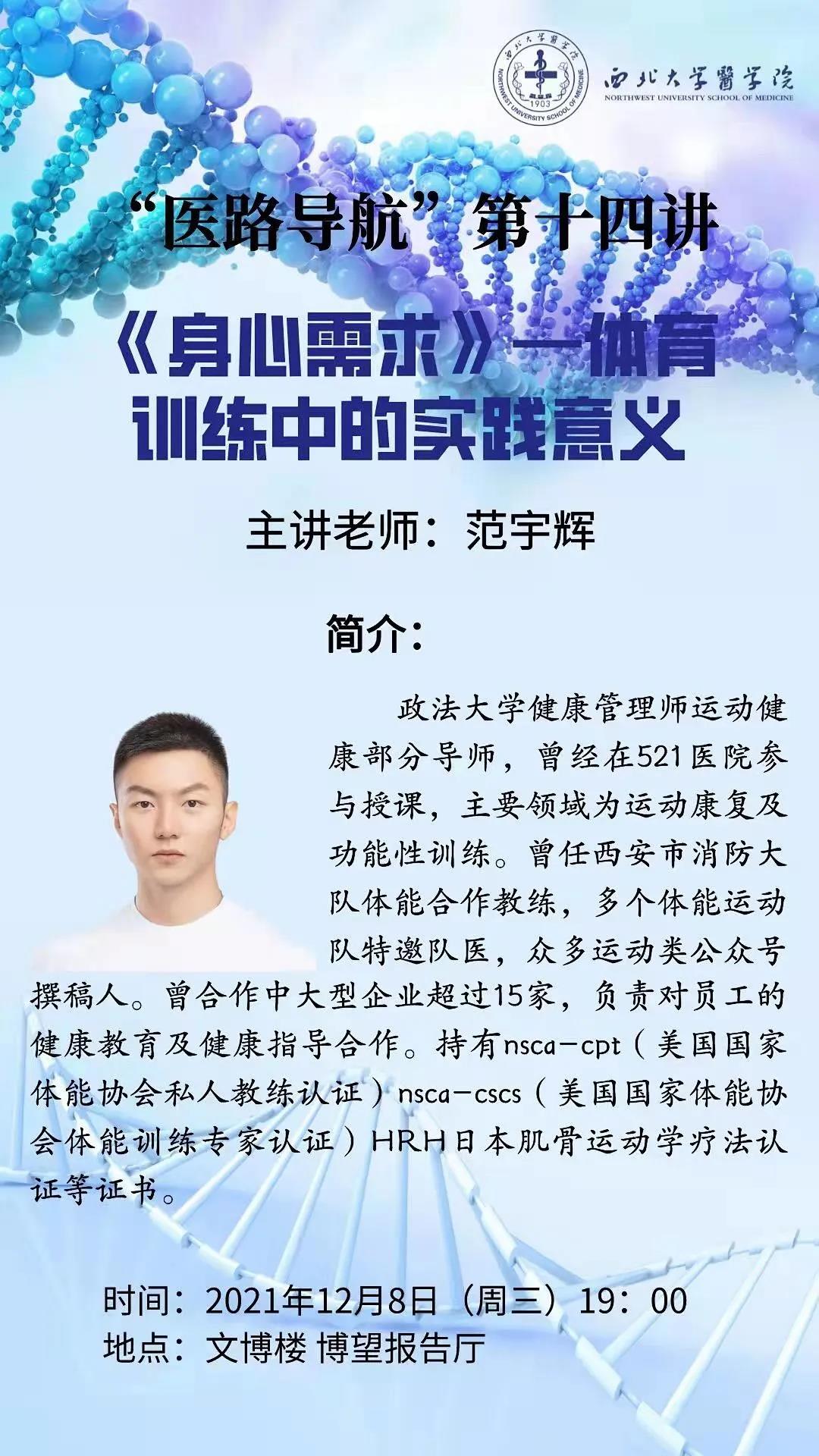 为增强学生运动意识,激发学生体育训练热情,促进医学生全面发展。12月8日,学院邀前西安市消防大队体能合作教练范宇辉作《身心需求—体育训练中的实践意义》主题报告。