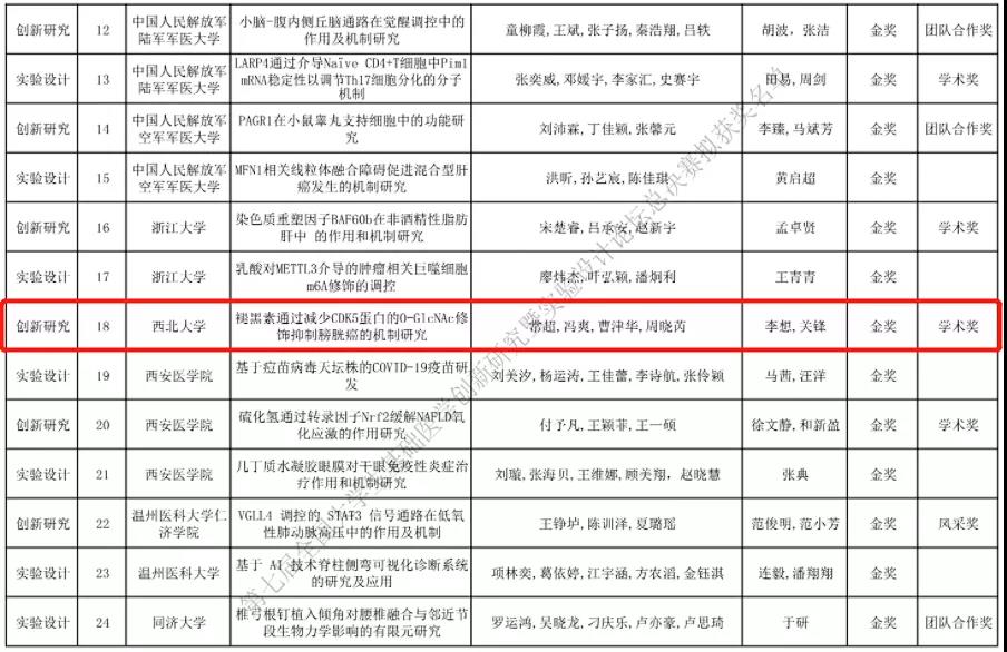 12月5日,全国基础医学类教育领域影响力最大的大学生创新实践教育成果展示平台——“第七届全国大学生基础医学创新研究暨实验设计论坛”总决赛在西安落下帷幕,本次大赛由高等学校国家级实验教学示范中心联席会基础医学组主办、空军军医大学承办。学部学子历经校内初赛、西部赛区复赛层层选拔,2支队伍从国内181所本科高校、3700余名学生的868项作品中脱颖而出进入总决赛的舞台,最终斩获金奖1项、银奖1项、最佳学术奖1项,取得了首次参加全国大赛即夺金的开门红。