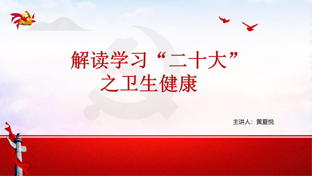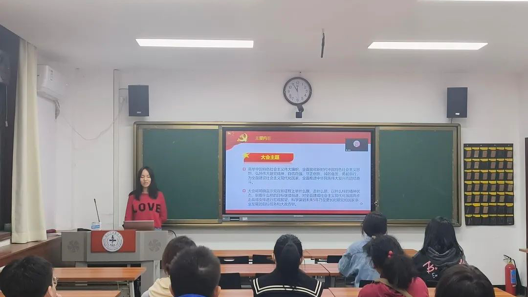 黄夏悦从增进民生福祉-提高人民生活品质、推进健康中国建设、青年期望三个部分解读学习党的二十大之卫生健康,并号召青年团员听党话,跟党走,让青春在全面建设社会主义现代化国家的火热实践中绽放绚丽之