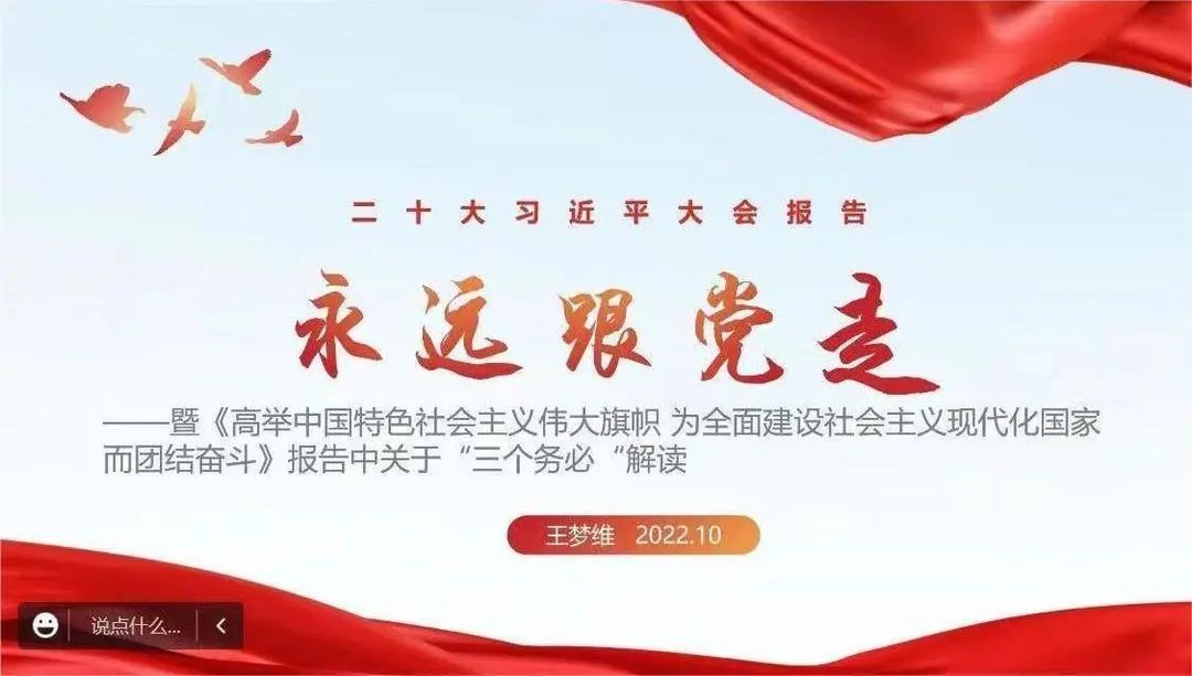 石卓雅聚焦党的二十大,介绍了大会主要内容、重要讲话和时代意义,带领团员们学习了一个中心任务、“两步走”、三个务必、四个自信。