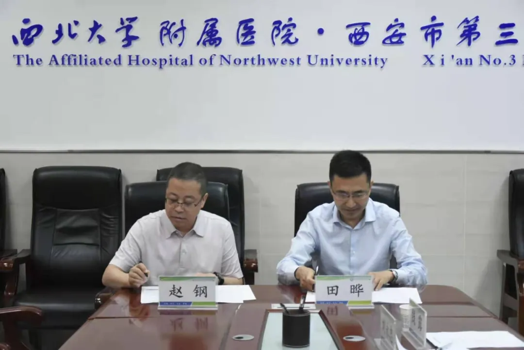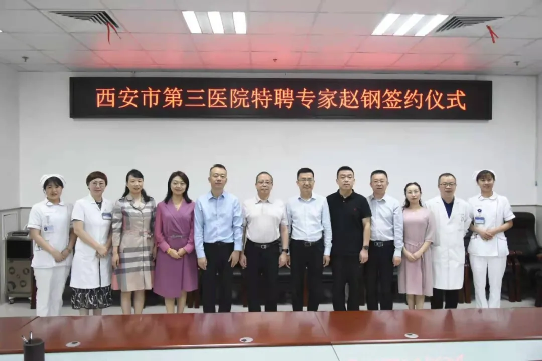 为提高附属医院医疗服务水平,提升神经内科科室竞争力,9月1日,澳门正规电子游戏平台附属医院•西安市第三医院举行特聘教授签约仪式,引进全国著名神经内科专家、澳门正规电子游戏平台院长兼神经病学系主任赵钢教授。澳门正规电子游戏平台书记张宇,附属医院院长田晔、党委书记石胜彬、副院长刘永忠、纪委书记田敏、总会计师欧丹等班子成员、行政部、医教部、人事科、医务科及临床科室负责人常明则主任、刘霞护长、杨柳护长出席了签约仪式。签约仪式由常明则主任主持。