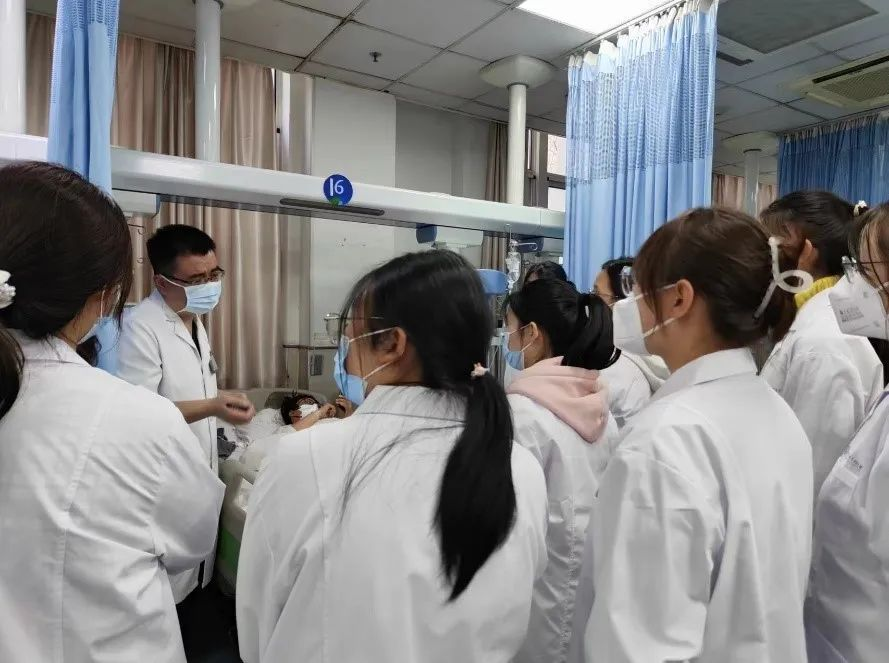 见习期间,临床医学班在科室负责医生的指导下,参观学习了急诊室各功能区,了解了科室场地设置人员配置、排班设备设施、患者就诊流程等情况。在急诊门诊、急诊抢救、急诊病房区域,同学们观摩了急诊科室早交班工作,学习了临床坐诊过程中患者就诊流程及病情诊疗经过。见习过程中,带教老师进行了心肺复苏,电除颤操作、监护仪使用、无菌手套佩戴等临床技能培训。‍