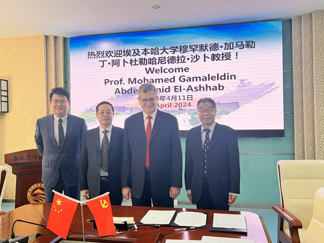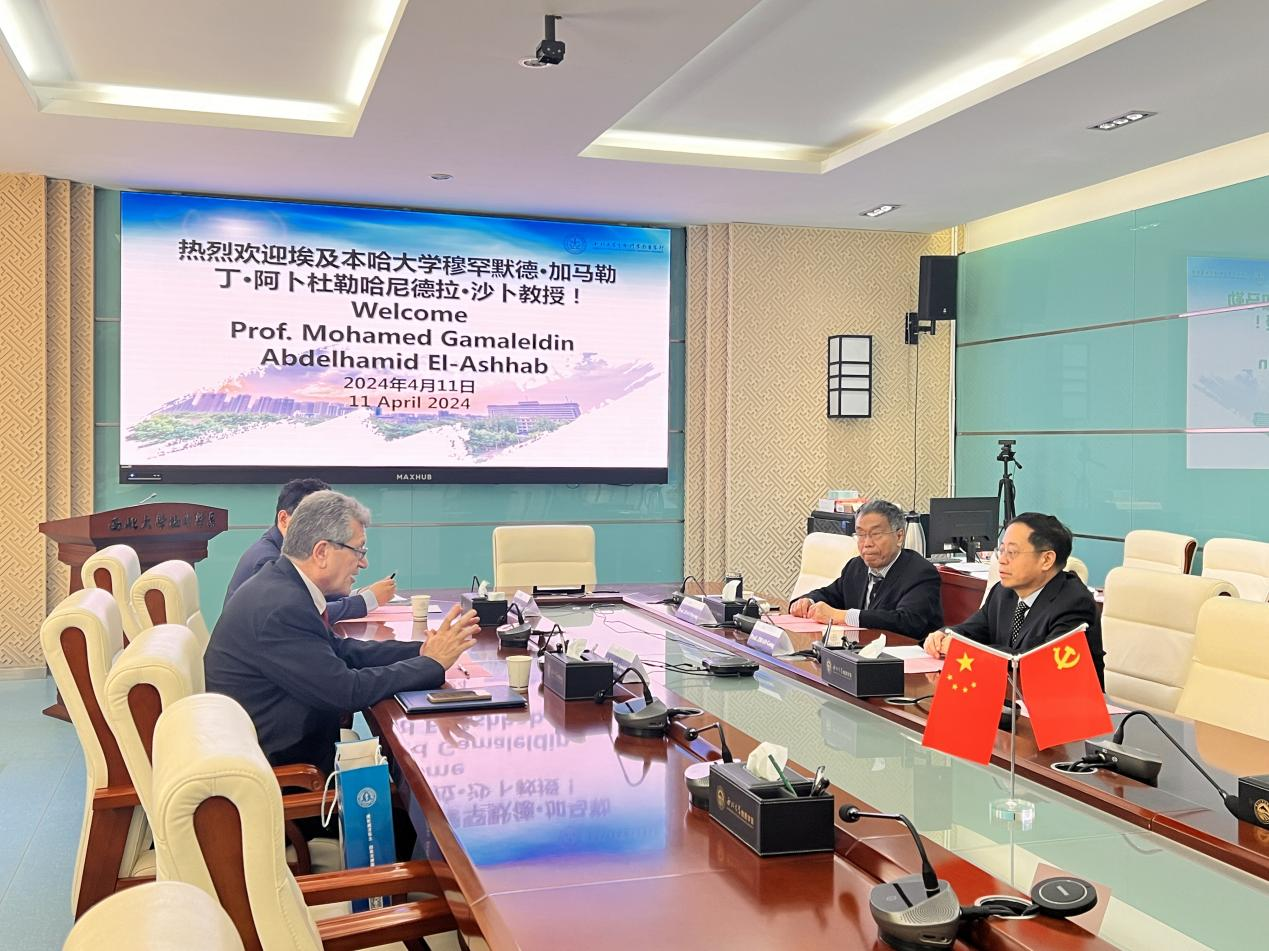 4月11日,埃及本哈大学澳门正规电子游戏平台院长穆罕默德·加马勒丁·阿卜杜勒哈尼德拉·沙卜教授到访澳门正规洽谈合作事宜。澳门正规院长赵钢,陕西省国际医学交流促进会副会长、陕西省人民医院儿童病院名誉院长焦富勇等相关负责人参加座谈。