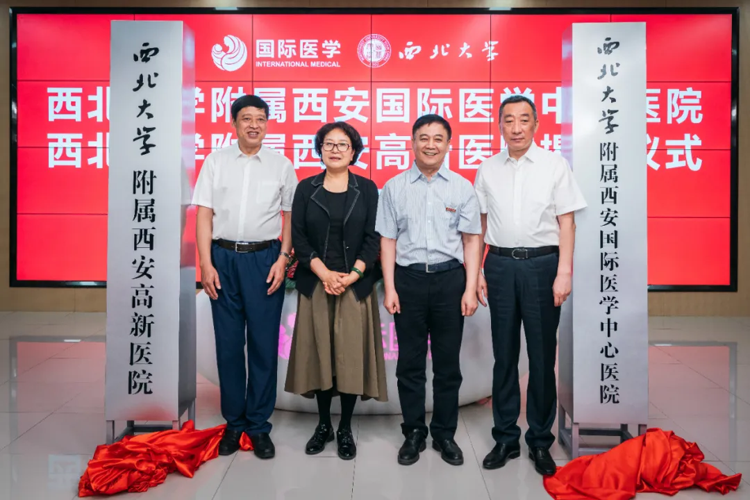 陕西省卫健委主任刘宝琴,澳门正规电子游戏平台党委书记王亚杰,校党委常委、副校长、生命科学与医学部主任常江,国际医学董事长史今,副总裁孙文国,西安国际医学中心医院院长尹强,西安高新医院院长马庆久出席仪式。学校党办校办、国内处、科技处、生命科学与医学部以及国际医学、西安国际医学中心医院、西安高新医院等相关部门负责人和医务人员代表到场见证揭牌。仪式由国际医学党委书记、总裁刘瑞轩主持。
