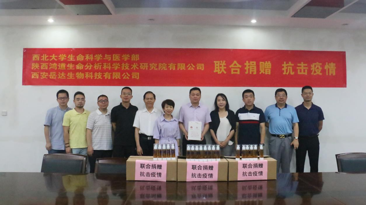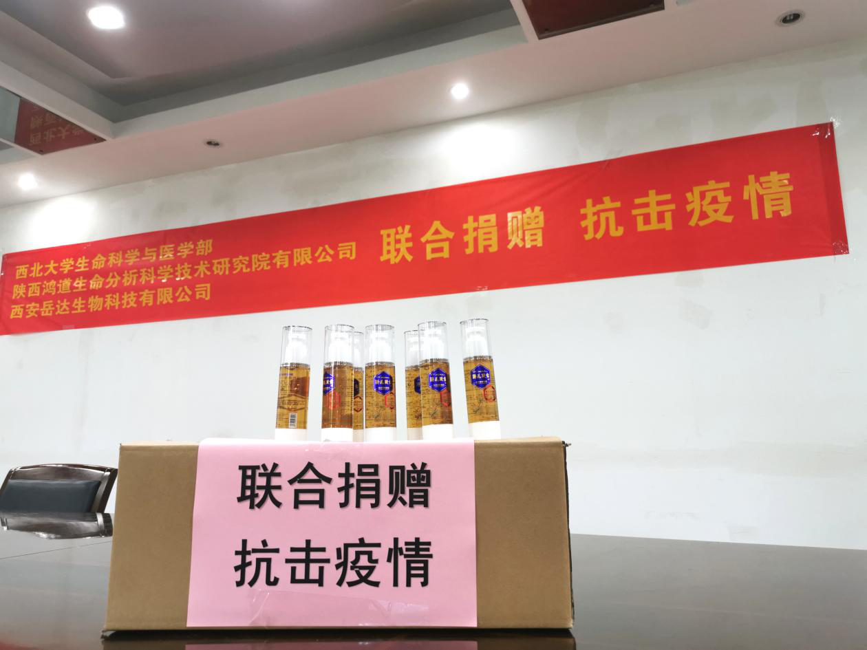 本次捐赠活动由鸿道生命分析科学技术研究院有限公司联合西安岳达生物科技有限公司共同完成,旨在为在校学生和教职员工提供公司自研自产、安全可靠、使用方便的消毒产品,助力校园疫情防控,保障师生身体健康。