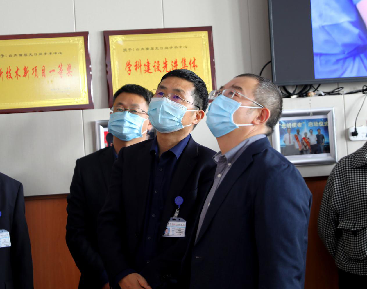 座谈会前,常江一行参观了医院的白内障屈光中心、学员公寓、智慧教室等医教部门。