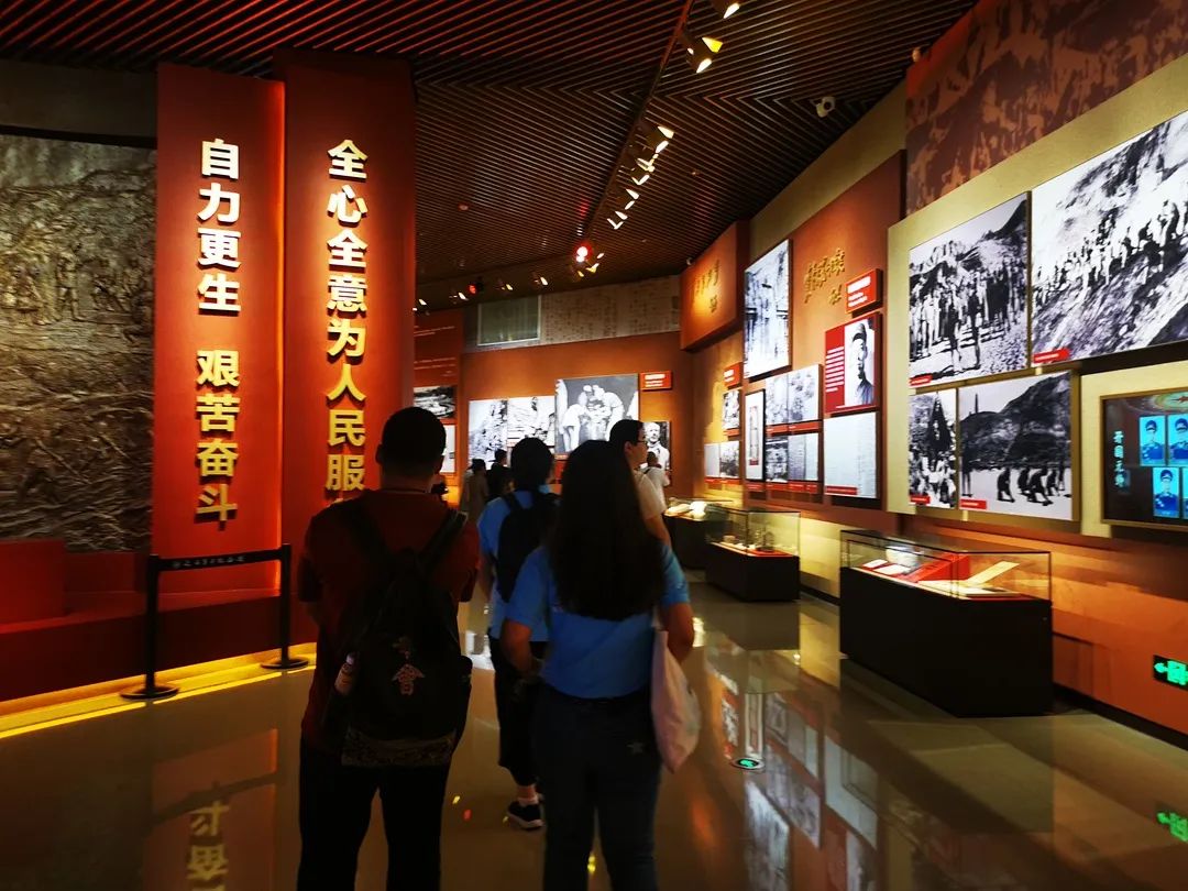 进入纪念馆,正对大门的是毛泽东、周恩来等领导人和来自五湖四海的军人、工人、农民以及国际友人汇聚在一起的雕像,体现了党始终与群众密切联系在一起。雕像人物身上破旧又厚重的衣物,脸上被风雨打磨的痕迹,瞬间将同学们带回到那个风雨飘摇的年代,先辈们眼中燃烧着革命必胜的火焰,脚下迈出坚定的步伐,用勇往直前的坚定信念深深感染着每一位队员。