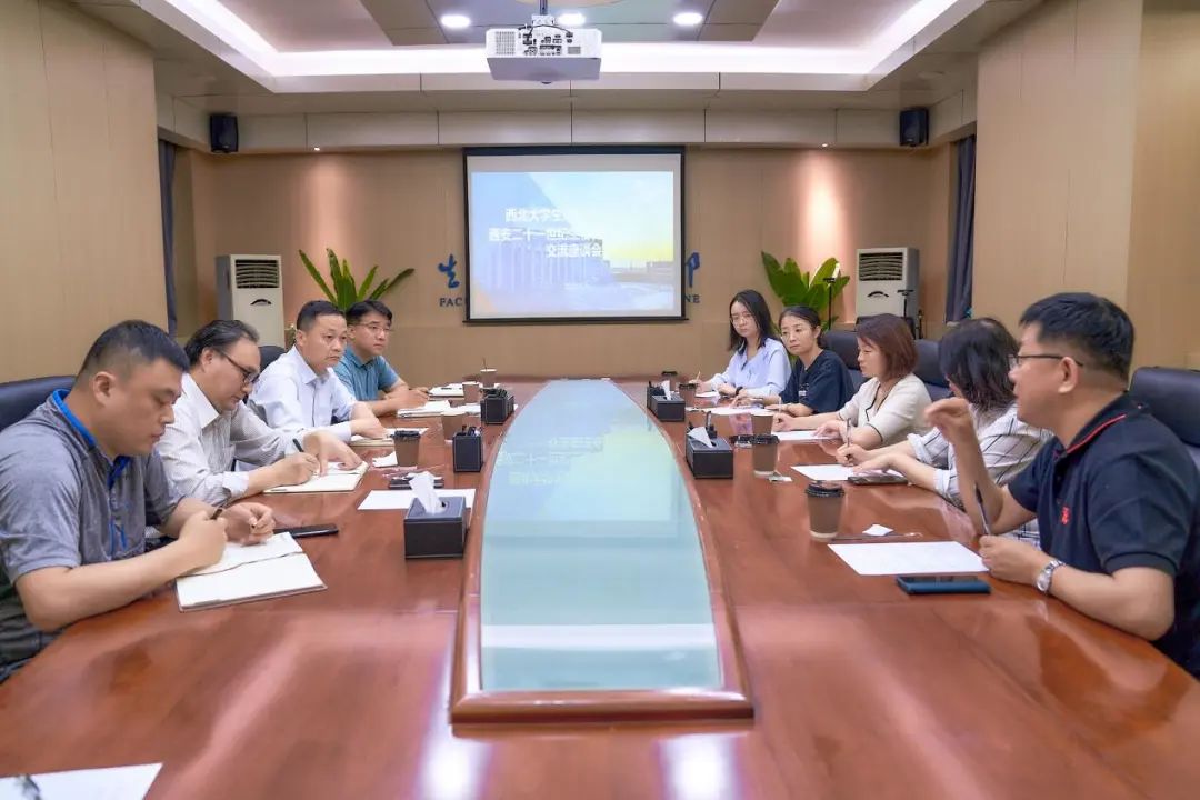 5月31日下午,西安二十一世纪生物科技有限公司董事长何瑞、总经理金天博一行来我校洽谈,校党委常委、副校长、生命科学与医学部主任陈富林出席座谈,生命科学学院院长付爱根、党委副书记魏宁,澳门正规电子游戏平台副院长陈凯及双方相关工作人员参加座谈交流。