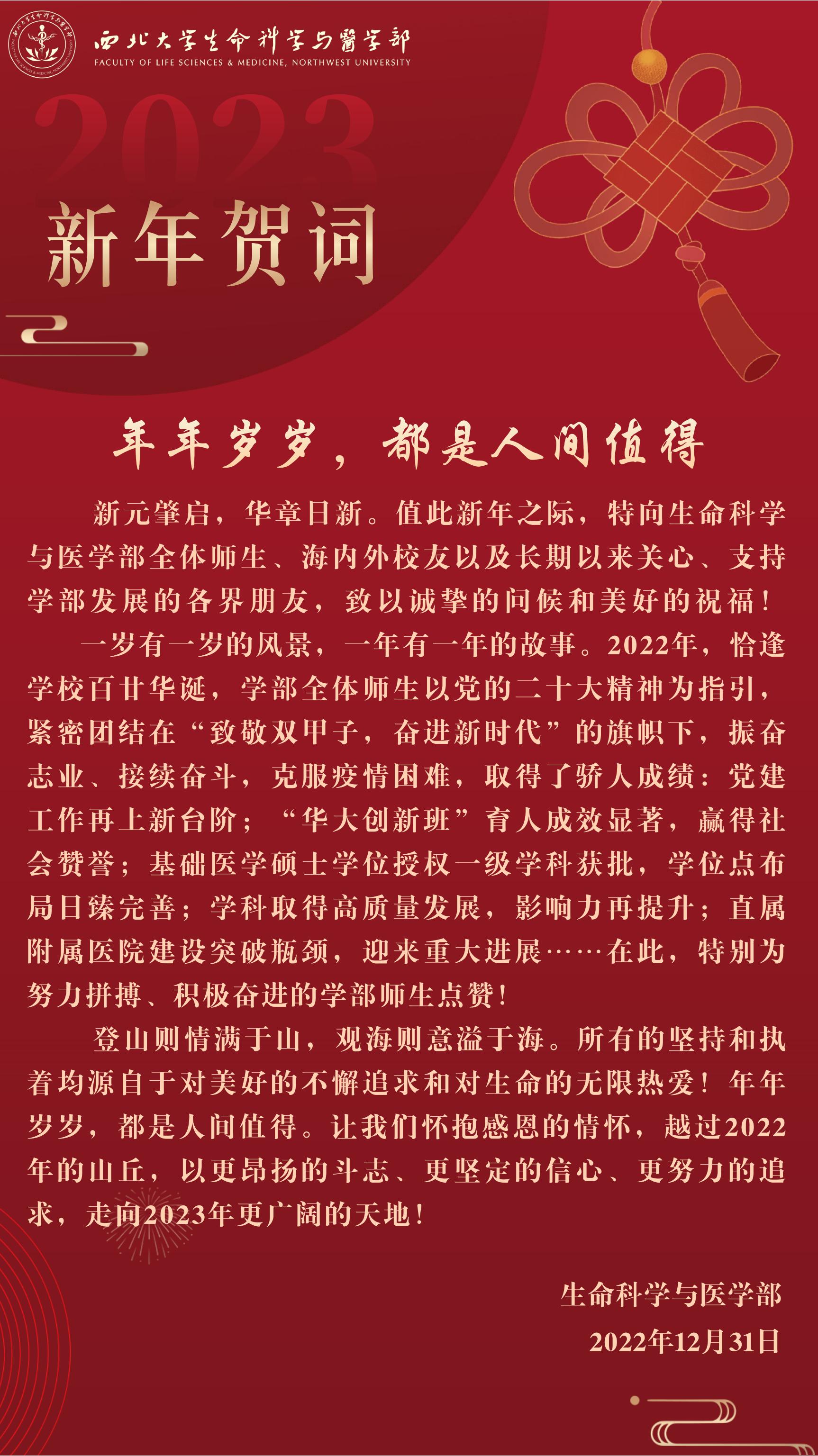 年年岁岁,都是人间值得—NWU生命科学与医学部新年贺词