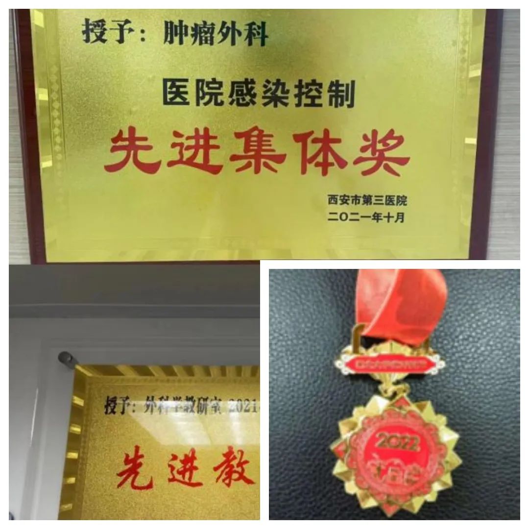 肿瘤外科两年的发展路,一路开拓,一路奋进,些许收获,科主任孟勇获得“澳门正规电子游戏平台优秀教师”荣誉称号,科室获得“医院感染控制先进集体”荣誉称号,外科教研室获得“先进教研室”荣誉称号,护理组获得“优秀带教科室”荣誉称号!