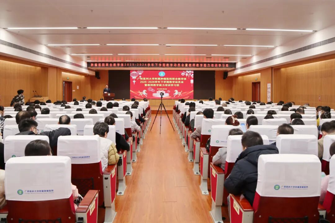 2月3日上午,附属肿瘤医院联合教学体2025-2026学年下学期教学动员会暨教师教学能力培训学习班在五象院区召开。联合教学体各单位负责人、教学管理人员、督导专家、全体教师及新入职员工近300人齐聚一堂,共同开启新学期教学工作序幕。