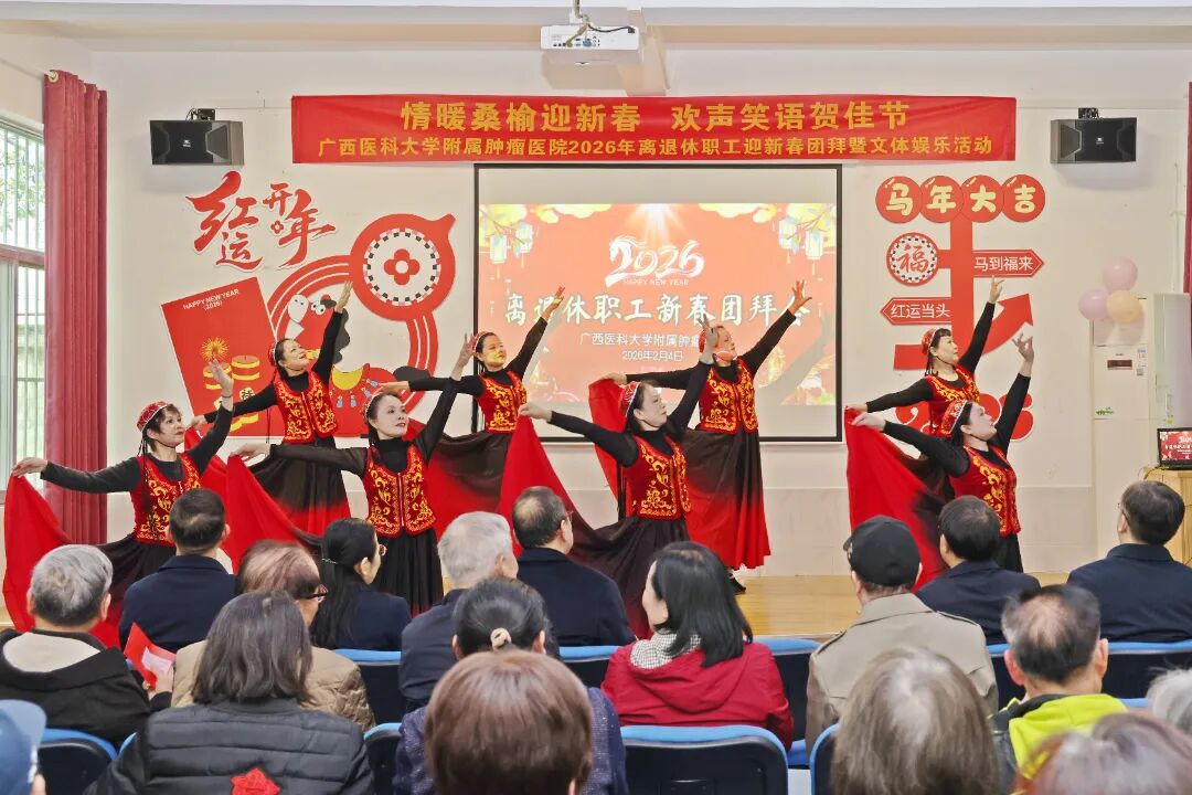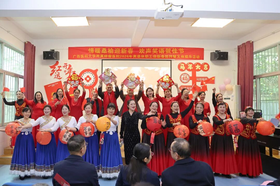 情暖桑榆迎新春,欢声笑语贺佳节。在2026年新春佳节即将到来之际,为切实落实医院对离退休职工的关心关爱,进一步凝聚离退休老同志的向心力,2月4日下午,附属肿瘤医院举办2026年离退休职工迎新春团拜暨文体娱乐活动。全体在家院领导、相关职能科室负责人与百余名离退休老职工欢聚一堂,共叙深厚情谊、共迎新春佳节、现场暖意融融。医院党委副书记、纪委书记谢爱泽主持活动。