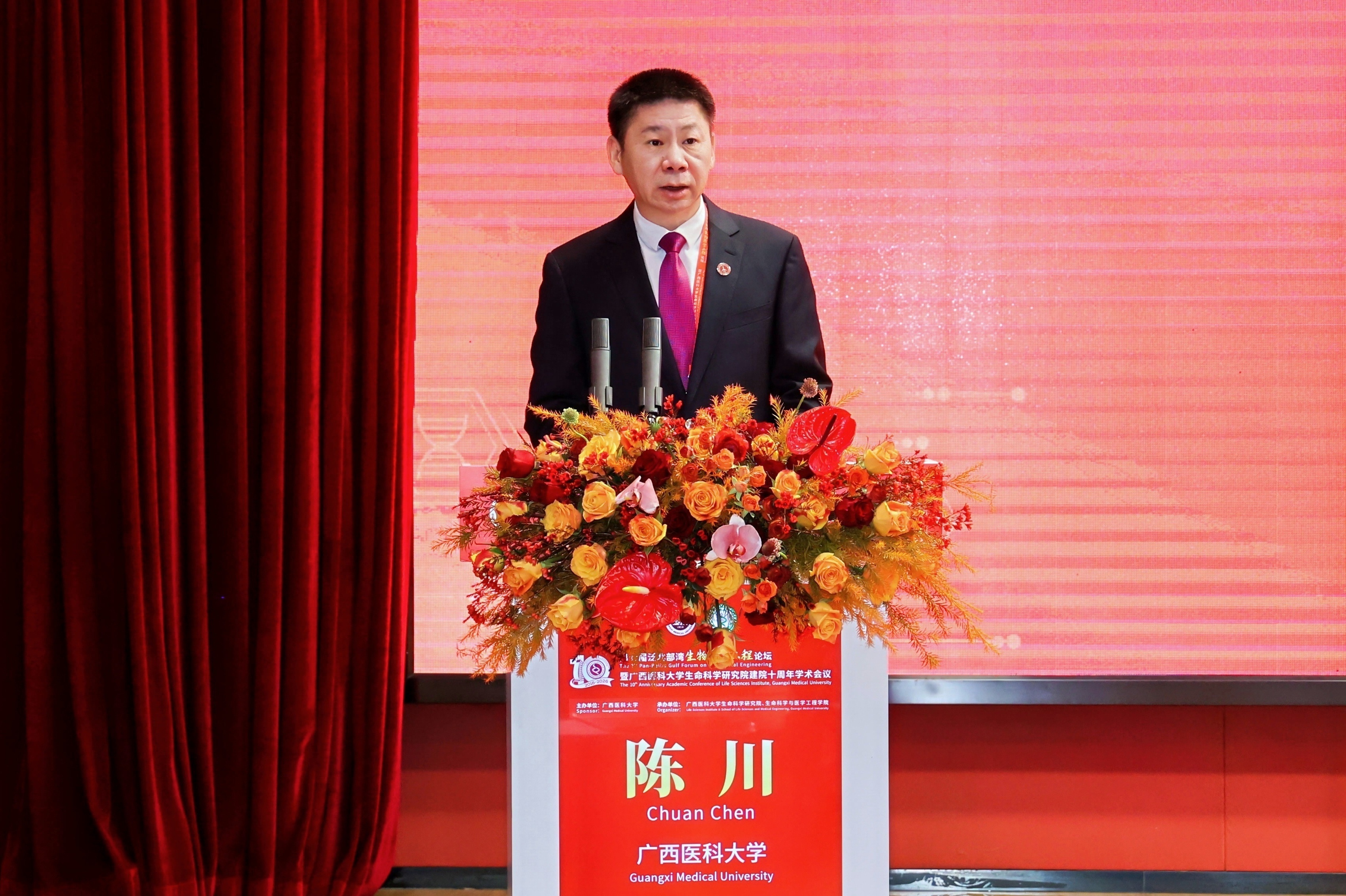 陈川代表beat365官方网站对与会的嘉宾表示热烈欢迎。他对生命科学研究院十年来学科建设、人才培养、科学研究、对外交流合作等方面取得的重要进展表示肯定。陈川指出,人工智能、大数据与生物技术的深度融合,正在重塑生命科学的研究范式,催生精准医疗、智能诊疗等新质生产力,为生命科学研究院的未来发展开辟了更广阔的赛道。他勉励生命科学研究院,站在建院十周年与“十五五”即将开局交汇的新起点上,要以更高站位锚定未来,以国家战略和地方需求为导向,以推动高质量发展为主题,以“双一流”建设为牵引,以内涵式建设为核心,奋力打造特色鲜明、国内知名、区域领先的生命科学创新高地与人才培养摇篮。他期待与会嘉宾在交流中碰撞思想火花,携手并肩,以协同创新的合力书写卫生健康事业高质量发展新篇章。