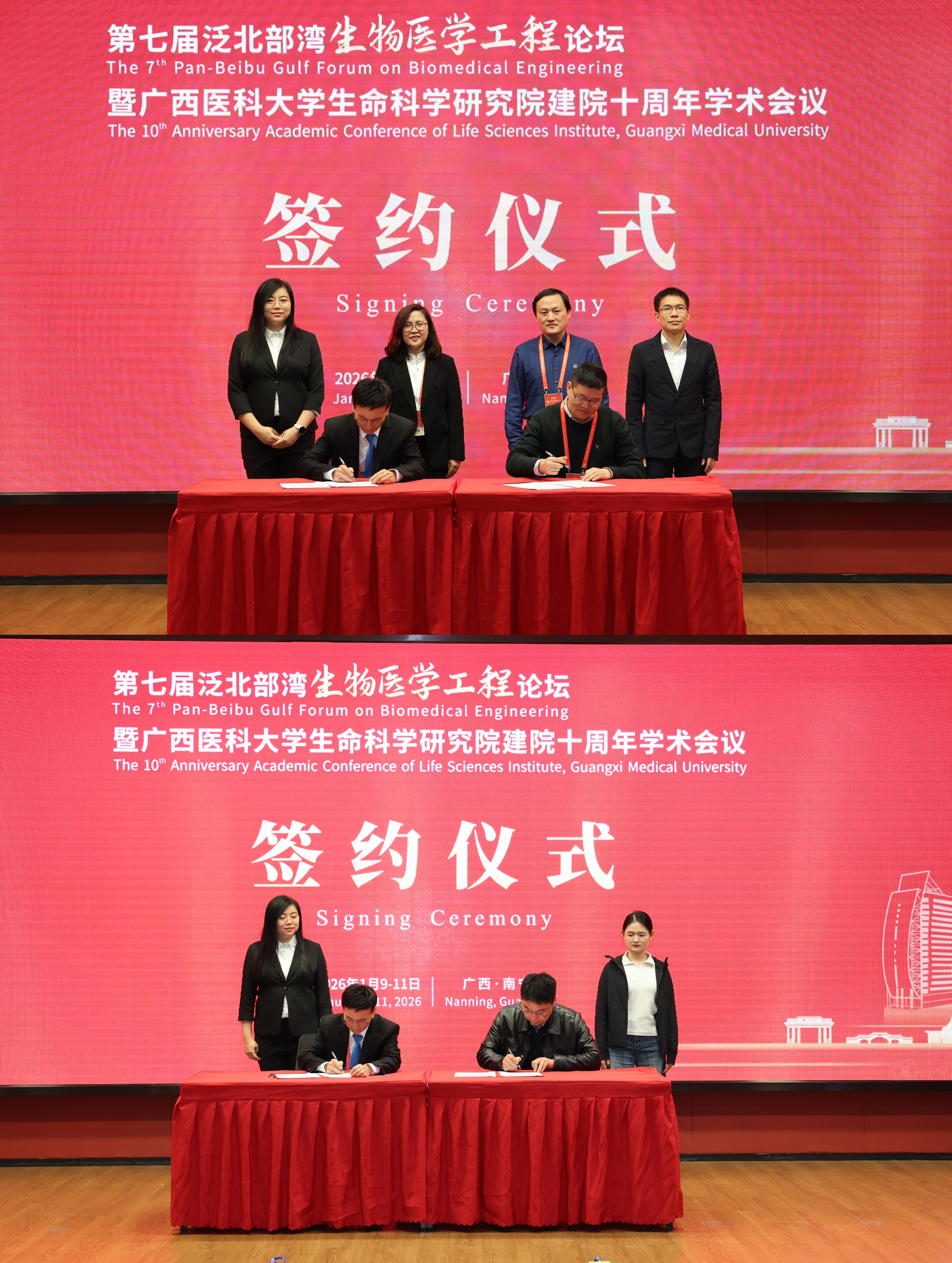 1月9日至11日,第七届泛北部湾生物医学工程论坛暨beat365官方网站生命科学研究院建院十周年学术会议在南宁举办。大会以“生物医学工程学科交叉创新和医工协同”为主题,来自全国及泛北部湾区域国家的生物医学工程领域专家学者、校内外师生代表齐聚一堂,聚焦学科前沿与区域需求,共话生物医学工程高质量发展。