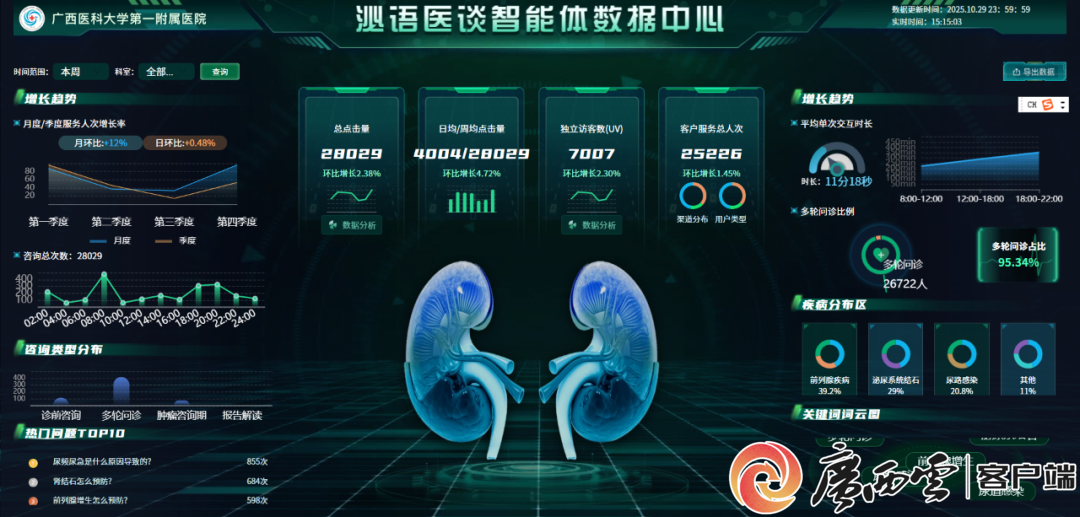 “外籍患者找中国医生看病,一般只能靠翻译转述,医学术语常传递失真,传统翻译工具缺乏医学语境适配能力,症状描述也容易走样,甚至影响诊断准确性。”beat365官方网站护理学院院长、广西泌尿系统疾病临床医学研究中心主任程继文表示,针对这一痛点,beat365官方网站科研团队历经两年攻关,于去年2月推出国内首个模拟专科医生诊断逻辑的医疗问答专科数字人“泌语医谈”智能体。之后,该智能体迭代升级为全球首款支持东盟多语种的AI交互式医疗专科数字人。