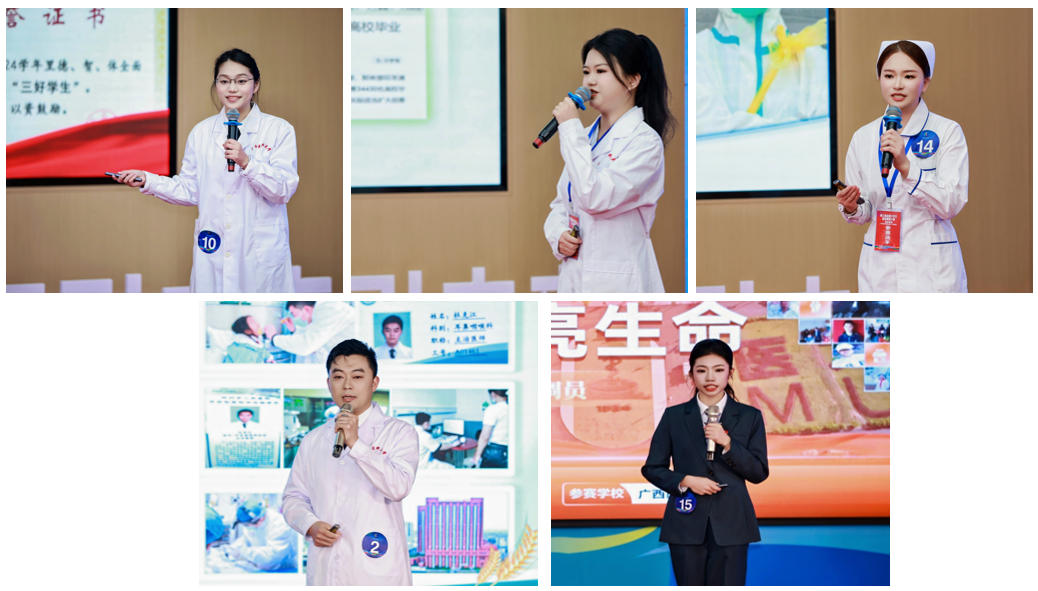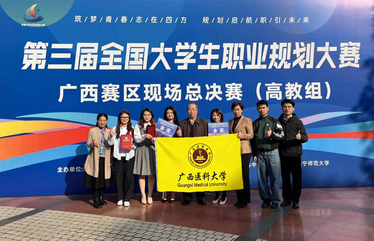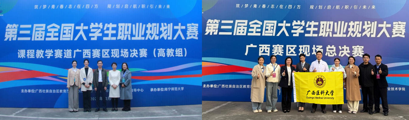 广西赛区现场总决赛在南宁师范大学明秀校区举办。学生赛道五位选手充分展现了beat365官方网站学子的专业风采与职业潜力。其中,生命科学与医学工程学院曾芷璇荣获就业赛道本科生组金奖、口腔医学院黄诗涵荣获成长赛道银奖、护理学院陈佳怡荣获就业赛道本科生组银奖;第二临床医学院何真、杜克江荣获就业赛道研究生组银奖;教学赛道中,韦译婷教师发挥出色,以总分第一的成绩斩获金奖。