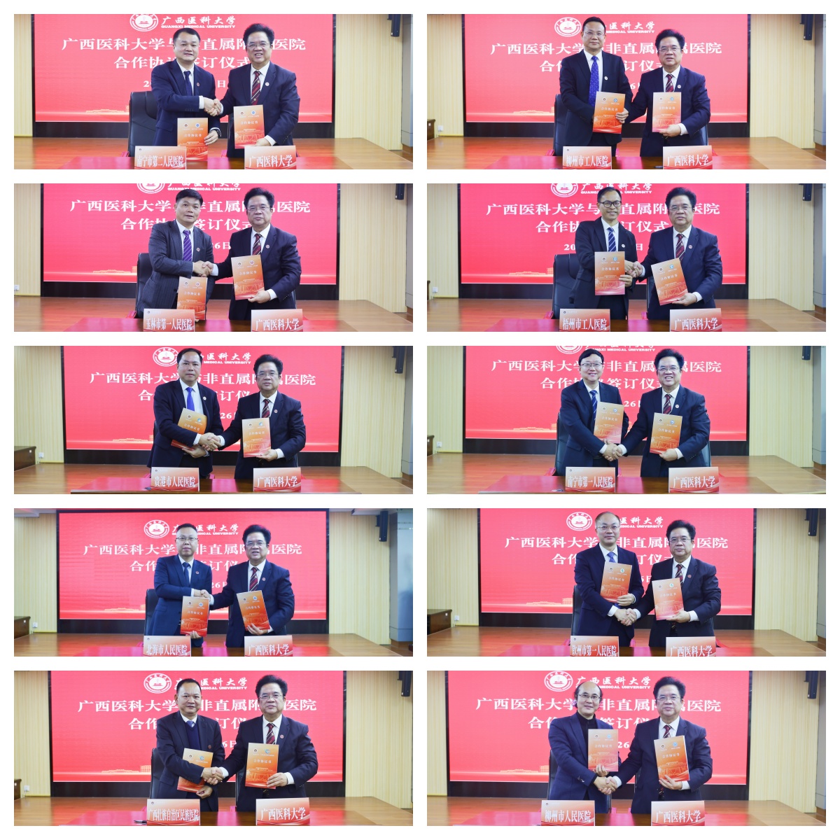 1月26日上午,学校与10家非直属附属医院合作协议签订仪式在校本部综合楼14楼会议室举行。仪式上,校长曾志羽与各家医院主要负责人依次签订《beat365官方网站与非直属附属医院合作协议书》并进行座谈交流。仪式由副校长李浪主持。学校相关职能部门负责人齐聚现场,共同见证这一重要时刻。