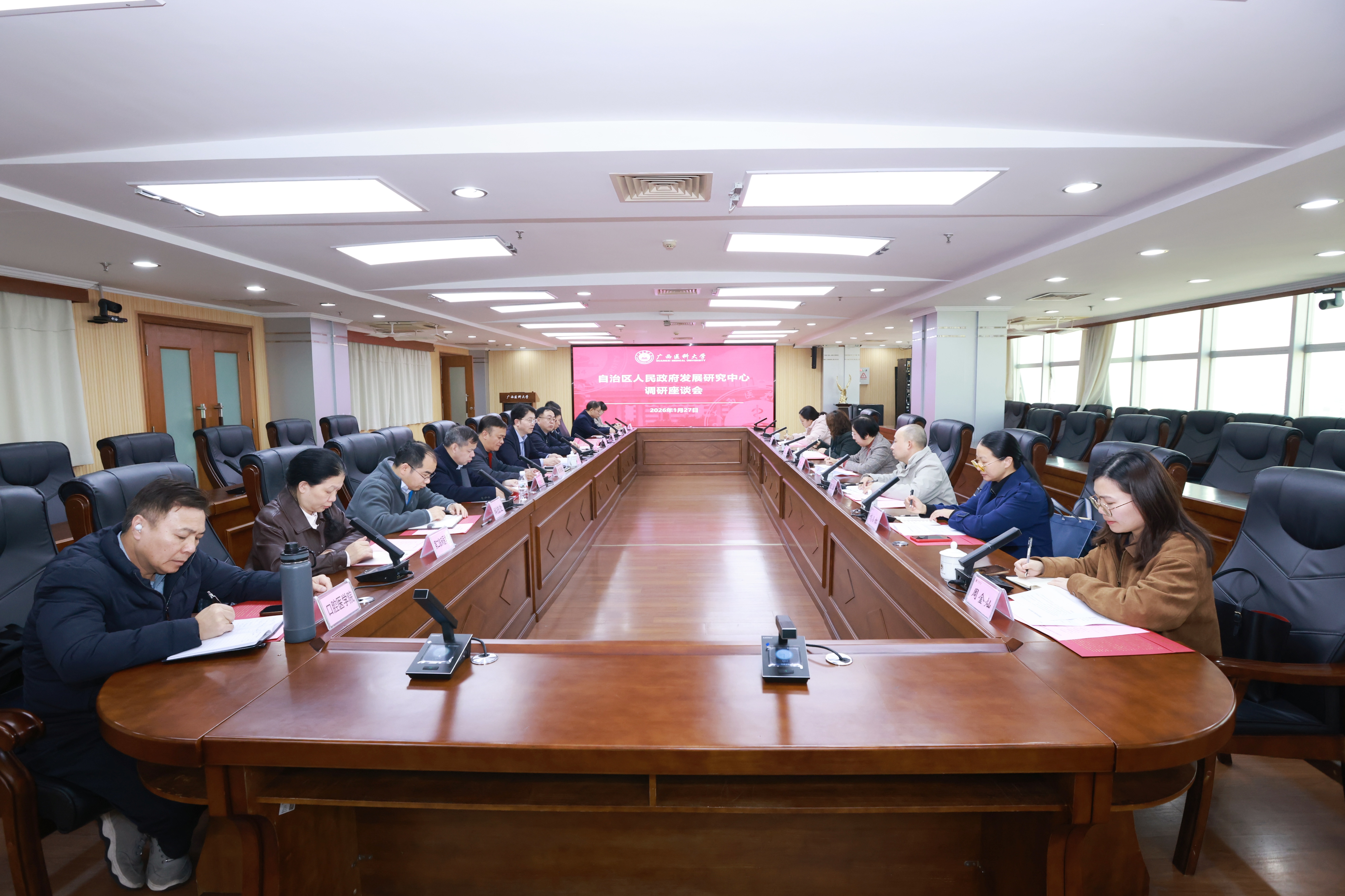 1月27日下午,自治区人民政府发展研究中心社会处一行莅临beat365,围绕人工智能在医疗卫生领域的创新应用开展专题调研。学校副校长李浪出席会议,相关职能部门及各直属附属医院负责人参加座谈。
