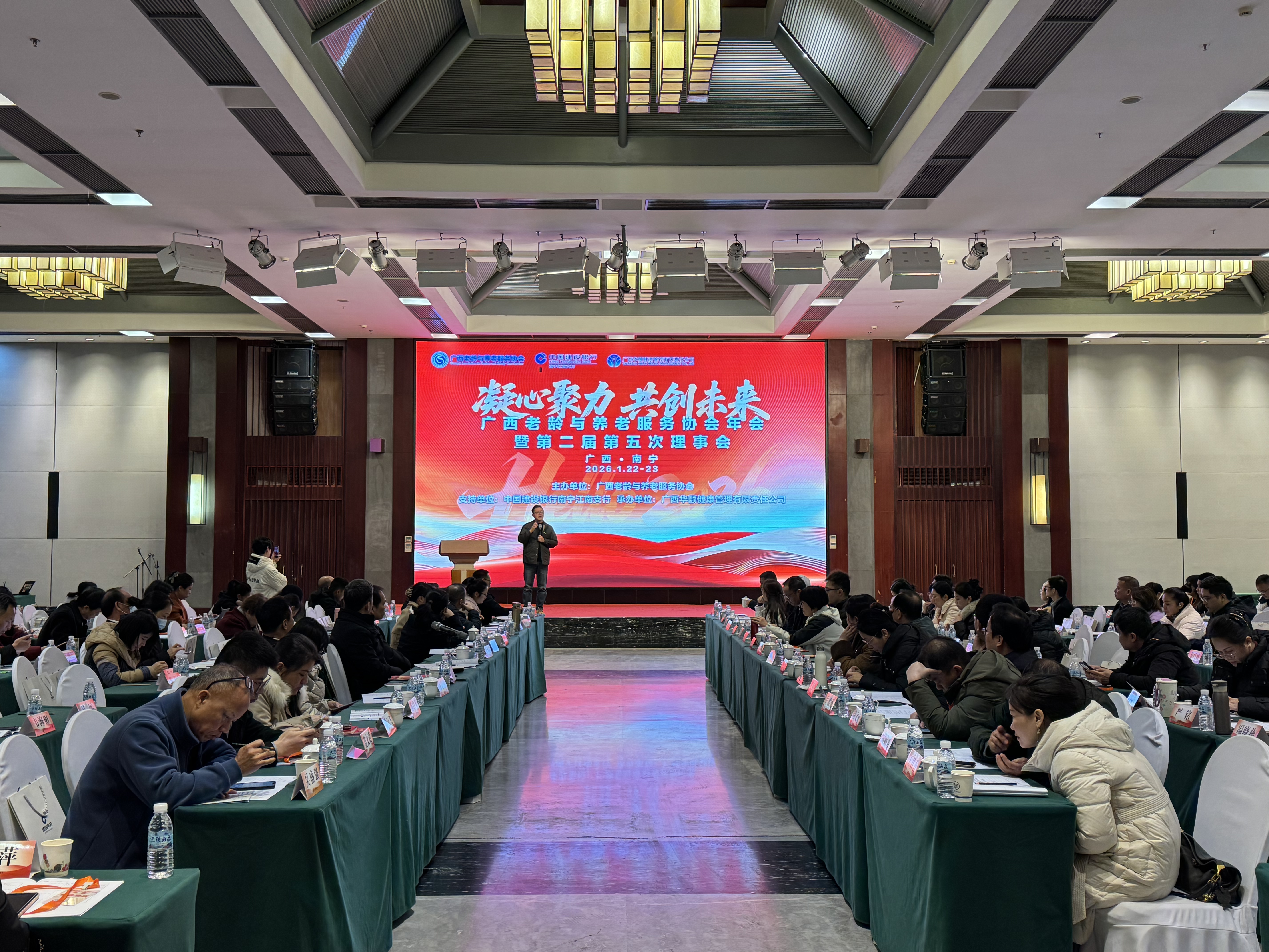 2026年1月22日,广西老龄与养老服务协会年会暨第二届第五次理事会在南宁召开,玉林校区、附设玉林卫生学校受邀出席,以“智慧康养,人才为核”为主题,分享校区在产教融合背景下的康养人才培养探索成果,为区域养老服务产业高质量发展建言献策。