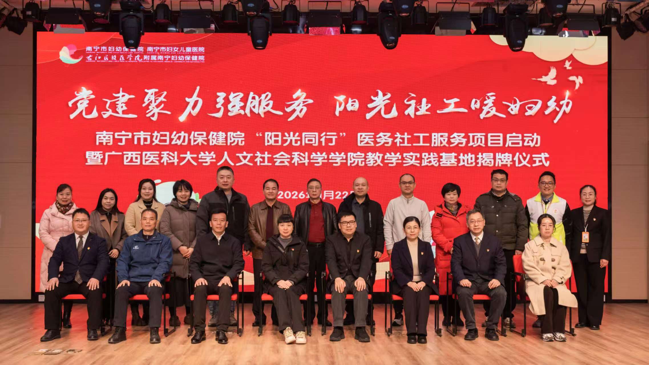 近日,人文社会科学学院党委书记唐忠带队赴南宁市妇幼保健院参加“阳光同行”医务社工服务项目启动暨学院教学实践基地揭牌仪式。南宁市妇幼保健院党委副书记邹大勇主持仪式,市委社会工作部、市卫生健康委、市残联、市妇联等相关单位代表出席。