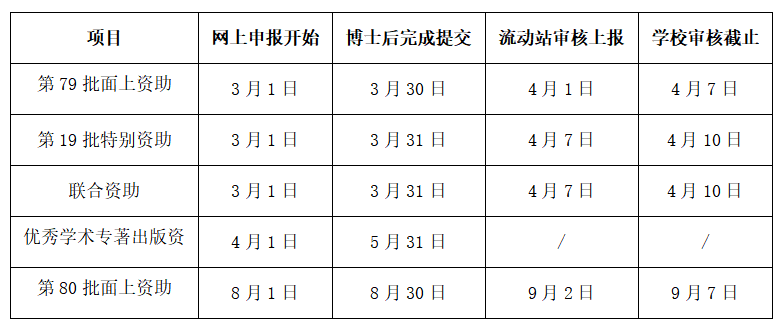 优秀学术专著出版资助按《中国博士后科学基金资助指南(2026年版)》(附件1)要求直接申报,面上项目、特别资助项目、联合资助项目按以下程序申报。