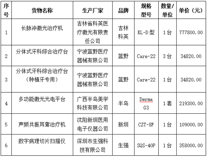 长脉冲激光治疗机等医疗设备采购项目