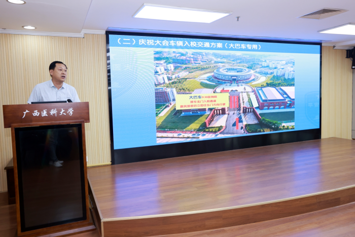 其次,曾志羽就校庆安保工作提了三点要求:一是各单位要提高政治站位,强化责任担当;二是开展清单式安全排查,确保安保工作全覆盖、不留死角;三是希望全校师生员工齐心协力,以主人翁精神全力以赴,确保90周年校庆各项活动取得圆满成功。