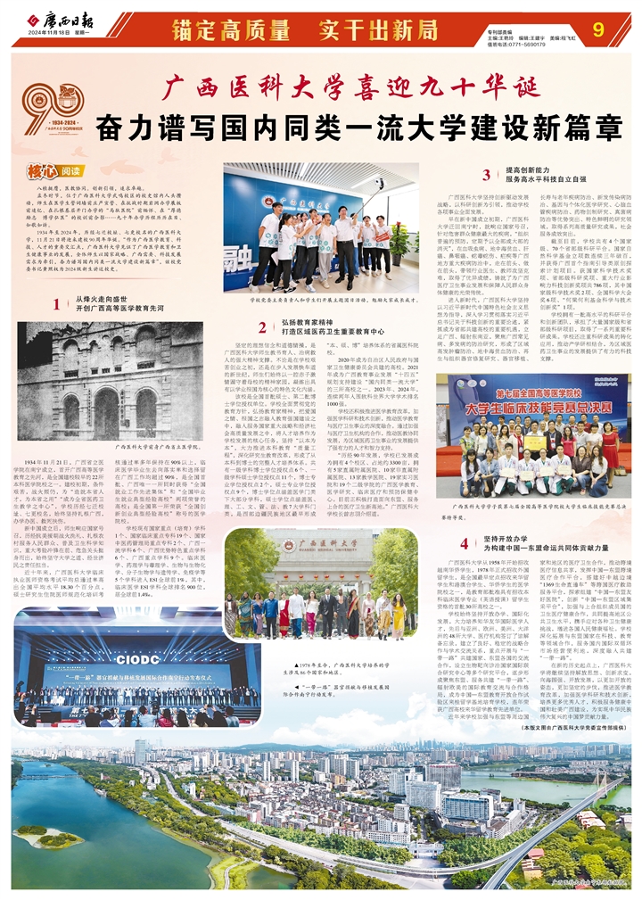 【媒体看医大】《广西日报》刊发beat36590周年校庆文章:beat365官方网站喜迎九十华诞 奋力谱写国内同类一流大学建设新篇章