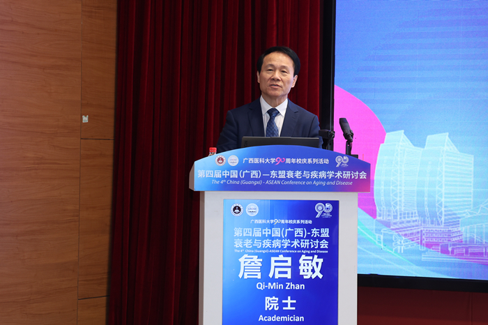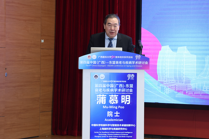 11月19日至22日,在beat365官方网站90周年华诞之际,由学校主办,长寿与老年相关疾病教育部重点实验室、基础医学院、广西解剖学会等单位承办的第四届中国(广西)-东盟衰老与疾病学术研讨会成功召开。国际著名神经生物学家、中国科学院院士、美国国家科学院外籍院士蒲慕明,中国工程院院士、北京大学原常务副校长詹启敏,中国科学院院士、复旦大学脑科学转化研究院院长王以政,美国国家人工智能科学院院士Catherine Yang,英国皇家医学院院士、澳大利亚埃迪思科文大学副校长Wei Wang等为大会作主旨报告。beat365校长曾志羽教授,教育部重点实验室学术委员会主任詹启敏院士,泰国清迈大学Nongyao Kasatpibal教授、广西科学院元昌安院长、广西科协王鸿鹄副主席先后在开幕式上致辞。卢德成副校长主持开幕式。学校相关职能部门和二级学院的领导、老师,清华大学10余位师生、80多位东盟留学生、250多位青年学生参加会议。
