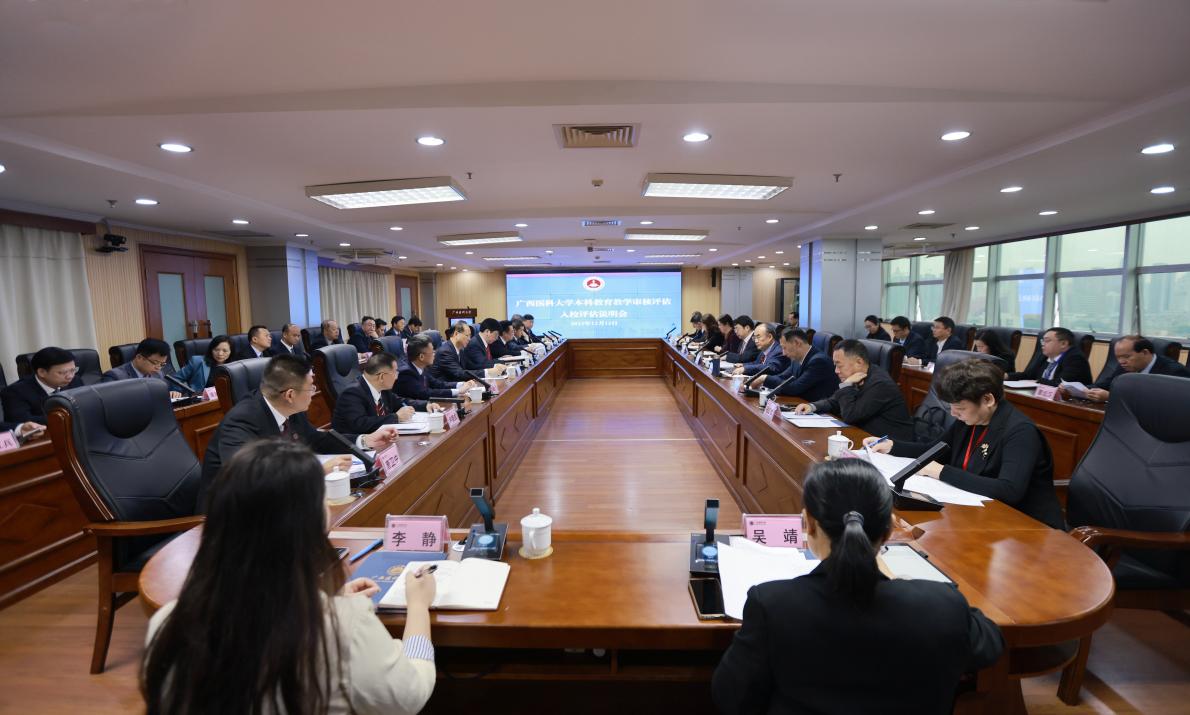 12月13日上午,审核评估入校评估说明会在校本部综合楼14楼会议室召开。审核评估专家组组长、南方医科大学原副校长文民刚教授,审核评估专家组副组长、山东第一医科大学副校长刘传勇教授,专家组成员中南大学王红红教授、广州体育学院徐中秋教授、中山大学王淑珍教授、西安交通大学程彦斌教授、中国药科大学宋建飞教授、广西大学曾冬梅教授、广西艺术学院谢仁敏教授以及全体校领导,各职能部门及教学单位主要负责人参加会议。会上,专家组组长文民刚教授对入校评估工作要求作了说明,学校党委黄照权书记致欢迎辞,曾志羽校长对学校本科教育教学工作作补充说明。说明会结束后,专家组与学校领导班子进行了集体座谈。