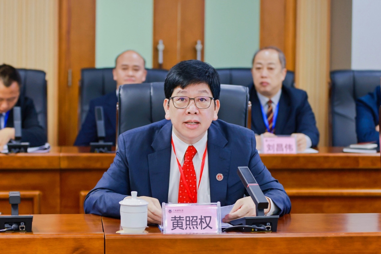 自治区教育厅副厅长黄雄彪代表自治区教育厅讲话。他充分肯定了beat365本科教育教学审核评估工作取得的成效,并对学校发展提出了三点要求:一是坚持立德树人,提升人才素质培养的质量;二是构建质量文化,推动学校本科教育高质量发展;三是强化整改落实,提高审核评估的实效。