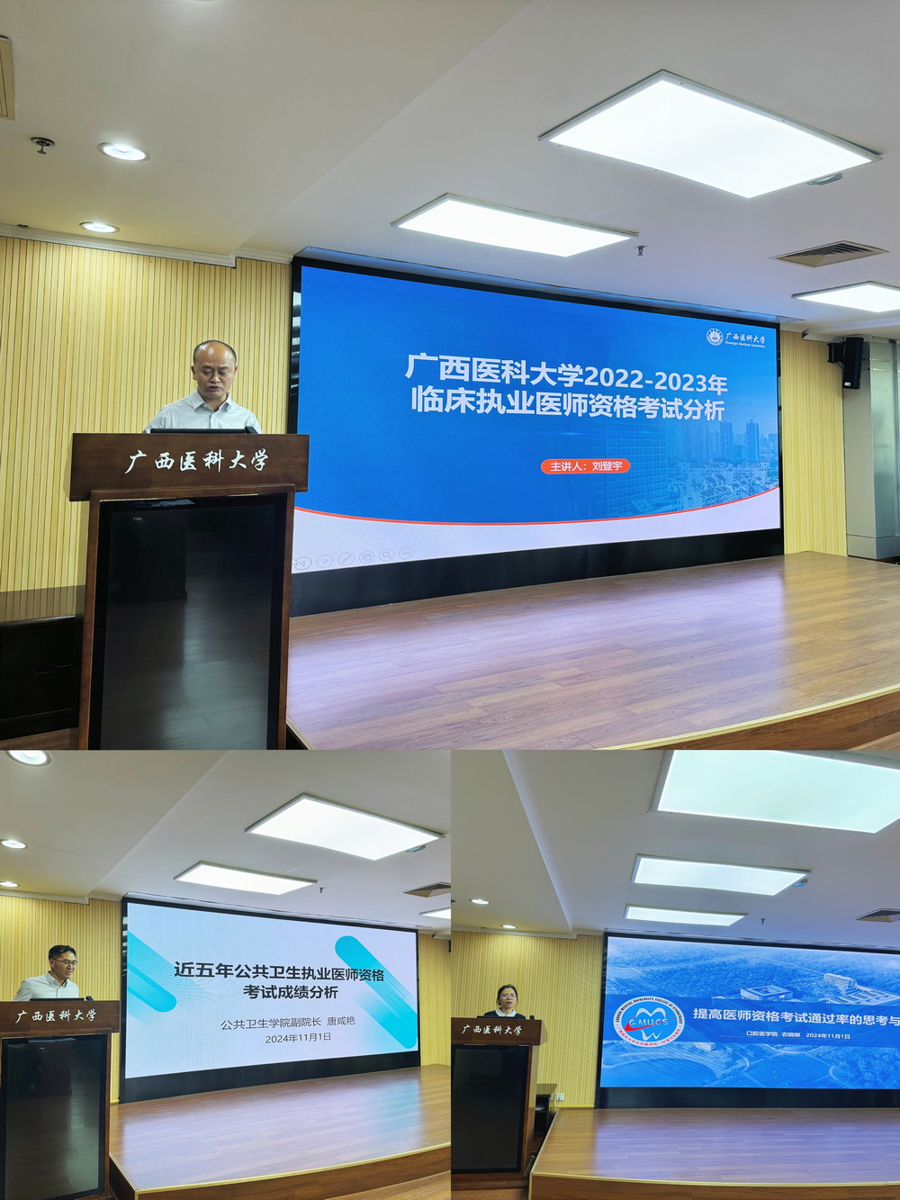 会上,刘登宇依次作学校《本科专业情况调查》《2022-2023年学校临床执业医师资格考试分析》专题报告,并对临床医学(双语班)和临床医学专业(“5+3”一体化)人才培养情况及存在问题作了汇报,教育评价与教师发展中心农清清主任汇报了临床医学专业(教改班)人才培养情况及存在问题,公共卫生学院副院长唐咸艳和口腔医学院教研科科长黎彦分别对近五年公共卫生执业医师资格和口腔医学执业医师资格考试情况作了分析,并对下一步抓好执业医师资格考试通过率,提升人才培养质量提出改进思路。