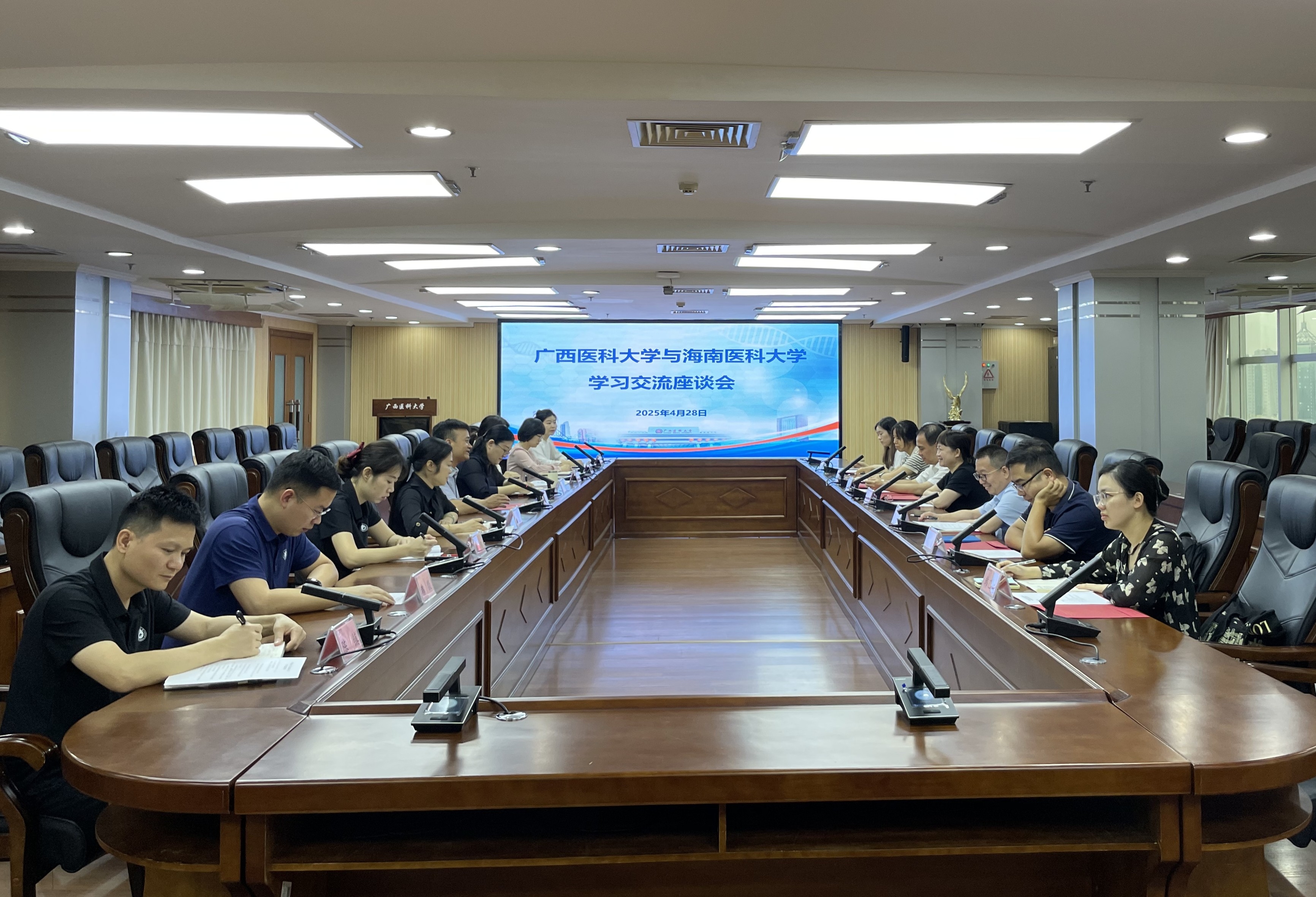 4月28日,海南医科大学教务处齐亚灵副处长一行7人来访beat365交流本科教育教学审核评估、临床医学专业人才培养、教学质量保障体系建设等工作。教务处、教育评价与教师发展中心、信息中心等部门负责人及相关人员参加交流。会议由教务处贾冰副处长主持。