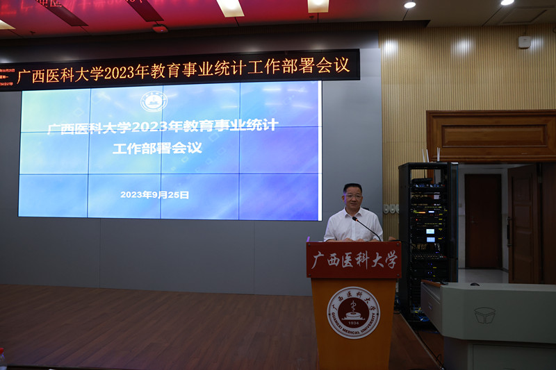 在工作部署会上,卢德成副校长指出,学校一直高度重视教育事业统计工作,教育事业统计是摸清家底、谋划发展、查漏补缺、服务决策的一项基础性工作,各单位要切实增强责任感和使命感,抓实落细各项工作。强调今年教育统计工作特殊,请大家务必重视再重视,认真再认真:一是进一步提高政治站位,深入学习贯彻习近平总书记关于统计工作的重要讲话指示批示精神、党中央国务院关于统计工作的决策部署以及自治区教育厅工作要求,落实统计相关法律法规和规章制度,依法依规统计。二是严格落实工作责任,按照“谁主管、谁负责、谁统计、谁负责”原则,严格落实一级抓一级、层层抓落实的责任体系。三是规范统计工作流程,严格执行“三审三签”数据报送要求,各单位上报统计资料必须由统计员、单位负责人、分管校领导签字,严把审核关,确保数据质量。