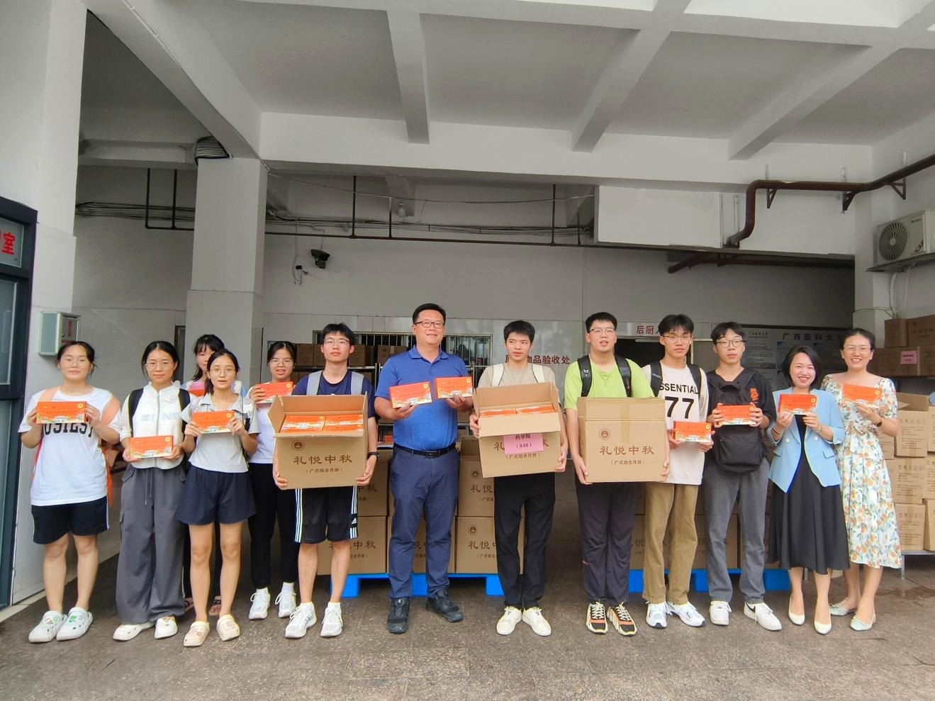 本次月饼发放工作分别在校本部学生食堂货物验收区、武鸣校区榕园餐厅二楼旁、玉林校区6号楼进行。此外,学校还为学生发放了中秋、国庆节鸡腿/鸡翅免费加餐券,让学生在学校欢度佳节。