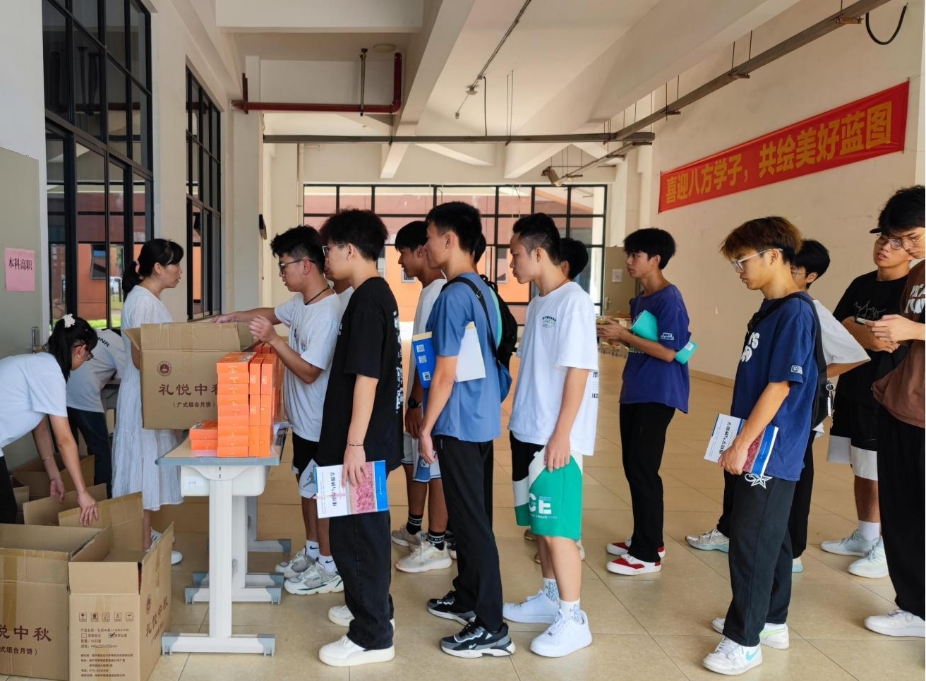 在我国传统节日中,中秋节被赋予“团圆”“和谐”的寓意,在中秋节即将来临之际,为了让学生们感受节日的气氛与学校的温暖,9月25日,学校为校本部、武鸣校区、玉林校区全体学生发放中秋定制校徽校训月饼,共计发放54000余枚。