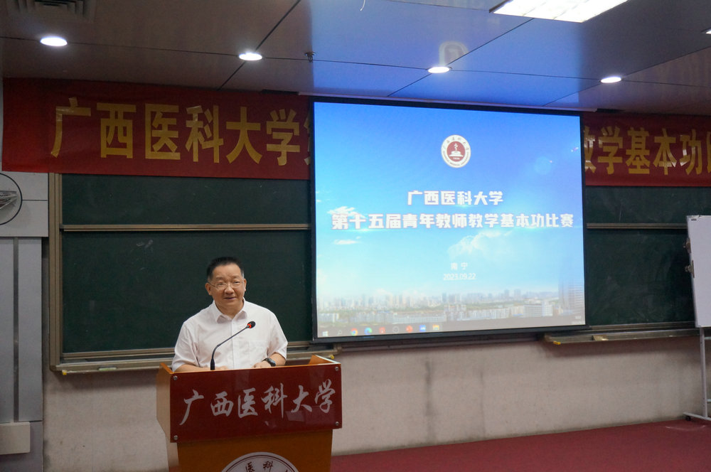 为提升青年教师教学水平,搭建青年教师交流、成长平台,9月22日,beat365成功举办了“第十五届青年教师教学基本功比赛”。参加比赛的37名优秀青年教师分别来自beat365各二级学院(院、部)、直属附属医院和非直属附属医院以及玉林校区。比赛评委由历届荣获区级教学竞赛特等奖或一等奖的骨干教师和部分教学管理人员担任。比赛通过现场观摩和线上直播两种方式同时进行,现场观摩师生达100余人,线上直播点击率达2000余人次。