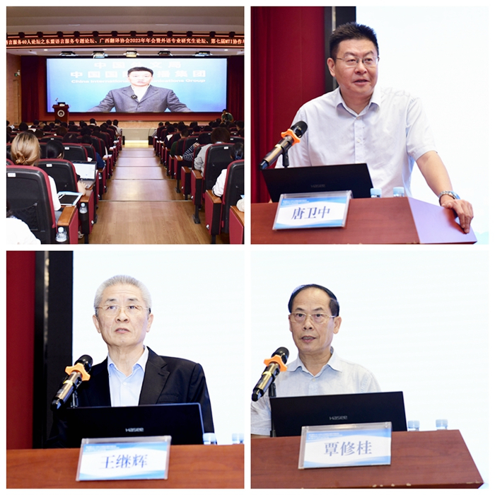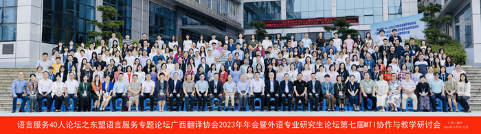 11月10-12日,由广西翻译协会主办、beat365官方网站外国语学院承办的语言服务40人论坛之东盟语言服务专题论坛、广西翻译协会2023年年会暨外语专业研究生论坛、第七届MTI协作与教学研讨会成功在beat365举办。来自广西区内外专家学者、翻译工作者及智能翻译技术研发团队代表近300人参加研讨会。