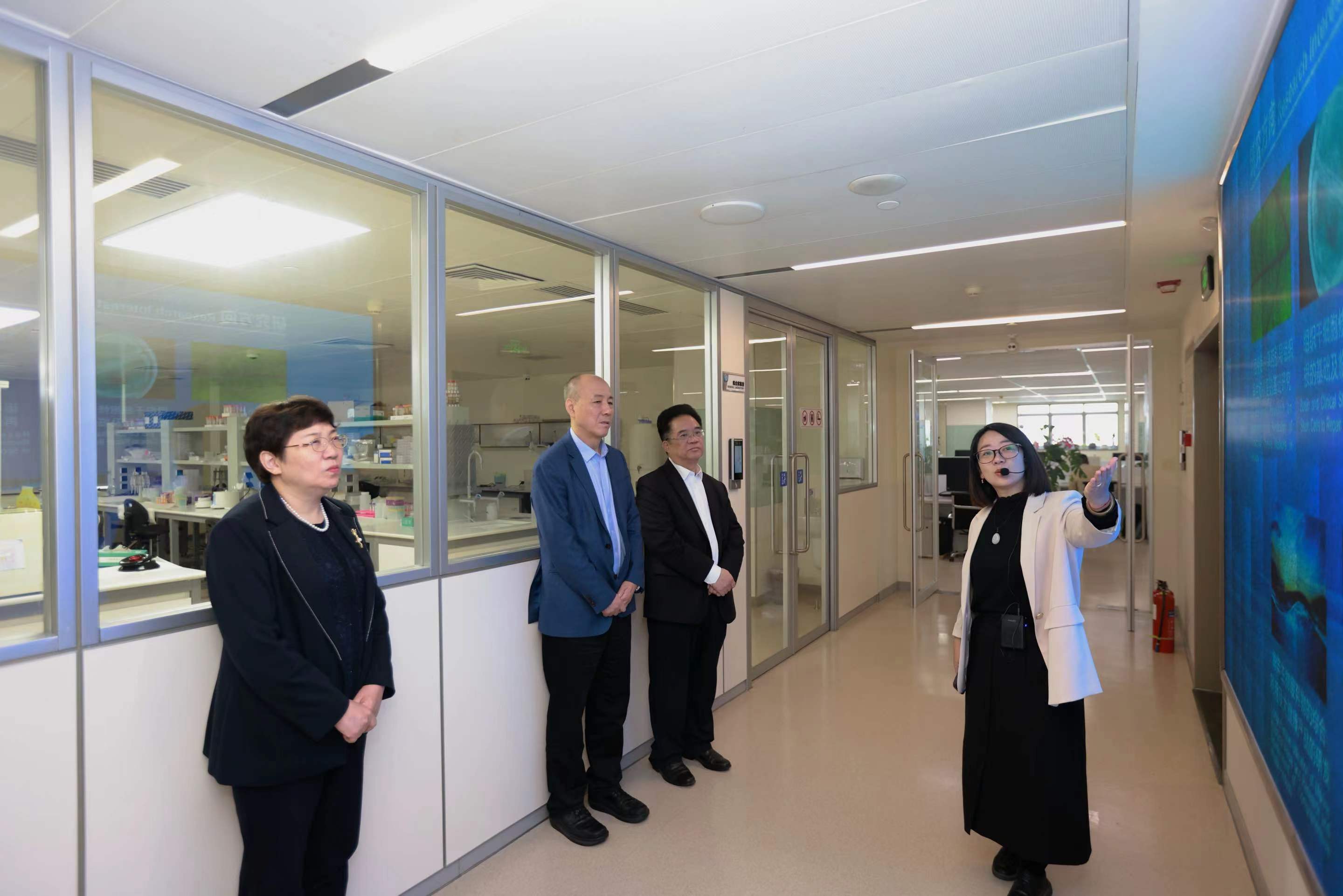 韩宇一行还实地考察了省部共建靶向肿瘤学国家重点实验室、再生医学与医用生物资源开发应用省部共建协同创新中心、国家卫生健康委地中海贫血防治重点实验室、生命科学馆。