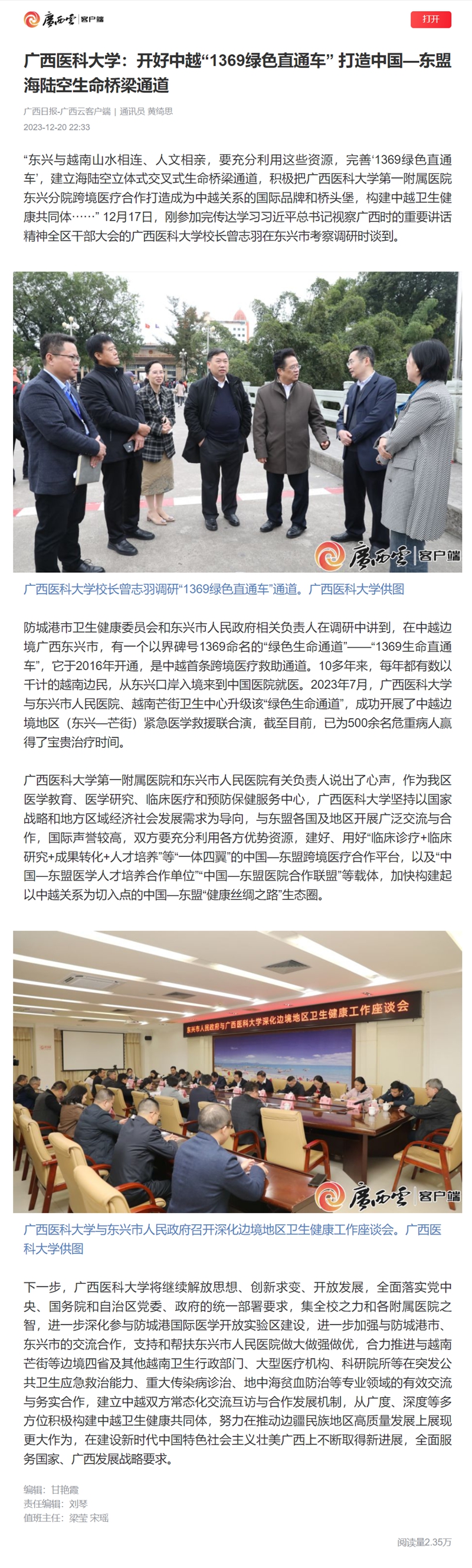 【媒体看医大】广西日报广西云客户端:beat365官方网站:开好中越“1369绿色直通车” 打造中国—东盟海陆空生命桥梁通道